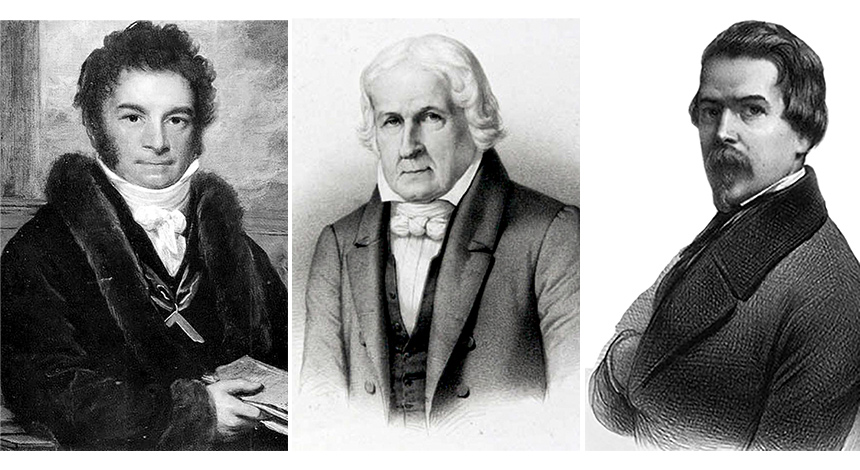 Hipólito da Costa, José Bonifácio e Varnhagen: defensores da capital no Planalto Central (imagens: S. A. Sisson/CC; Itamaraty Safra Catalogue; Reprodução/Pelas Ruas de São Paulo)