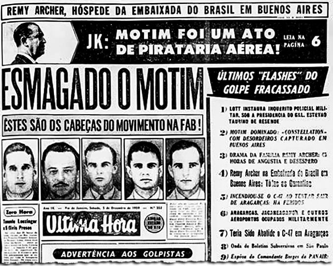Poucos dias depois de Aragarças, Jânio Quadros anunciou que era de novo candidato presidencial — “Jânio renuncia à renúncia”, noticiou um jornal. Ele venceu a disputa eleitoral de 1960, marcando enfim a chegada da UDN ao poder e esfriando os ânimos conspiratórios das Forças Armadas. Mas a paz não duraria. A famigerada renúncia de Jânio à Presidência da República, em agosto de 1961, e a tumultuada posse do vice João Goulart, no mês seguinte, despertariam os golpistas. A resposta deles viria em 1º de abril de 1964. Dessa vez, não falhariam.