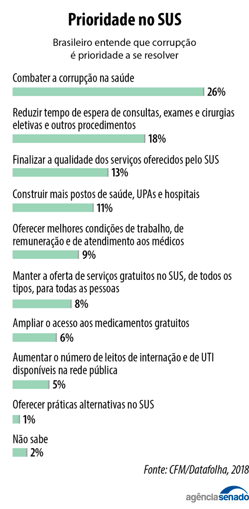 Além disso, não há no SUS fiscalização voltada para a qualidade dos serviços oferecidos, como há no setor dos planos de saúde, que tem acompanhamento da Agência Nacional de Saúde Suplementar (ANS)