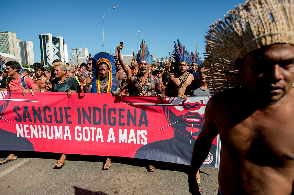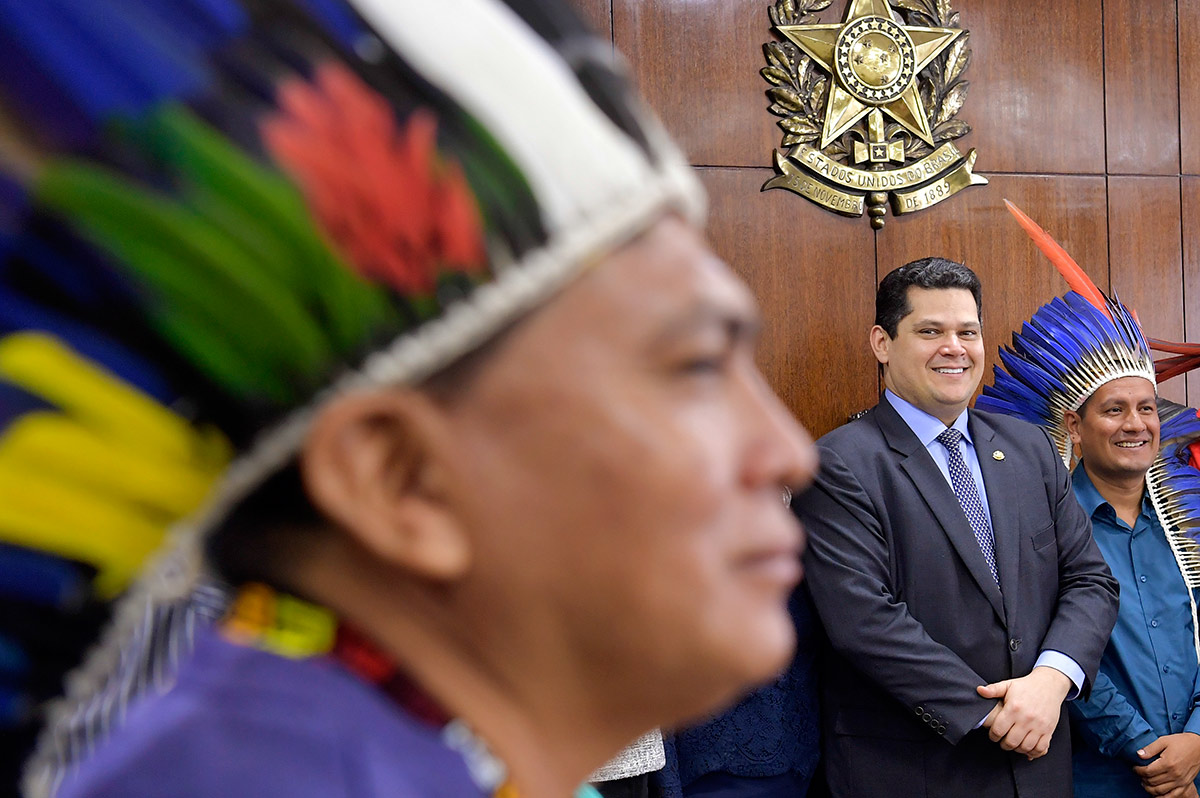 A mais recente mobilização dos povos indígenas começou em abril, o mês do Descobrimento. Durante a 15ª edição do Acampamento Terra Livre, em Brasília, eles buscaram o cenário mais propício para a batalha — o Congresso Nacional — e a arma mais eficaz: a pressão política. Não só participaram de audiências públicas no Senado, como foram recebidos no gabinete do presidente da Casa, Davi Alcolumbre, que prometeu se empenhar por eles.