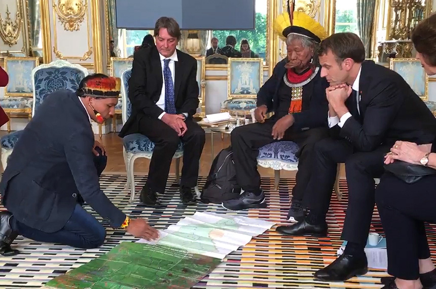 Para se contrapor a pontos de vista como esses, o lendário cacique Raoni (kayapó) iniciou em 3 de maio uma viagem de três semanas pela Europa, onde está mantendo contatos com autoridades como o presidente da França, Emmanuel Macron, e o Papa Francisco. Organizado pela ONG Floresta Protegida, da qual Raoni é presidente honorário, o giro tem como objetivo a defesa da Amazônia de um modo geral, e arrecadação de um milhão de euros destinados a guarnecer a reserva do Xingu.