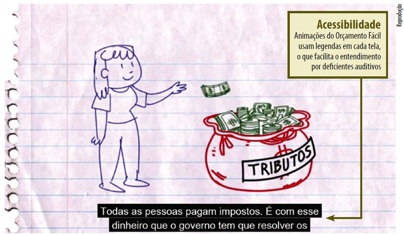 Como no YouTube as legendas já estão disponíveis em barra de rolagem, os vídeos do Orçamento Fácil no site do Senado usam o recurso em cada tela, facilitando o acesso aos deficientes auditivos e a compreensão dos desenhos.