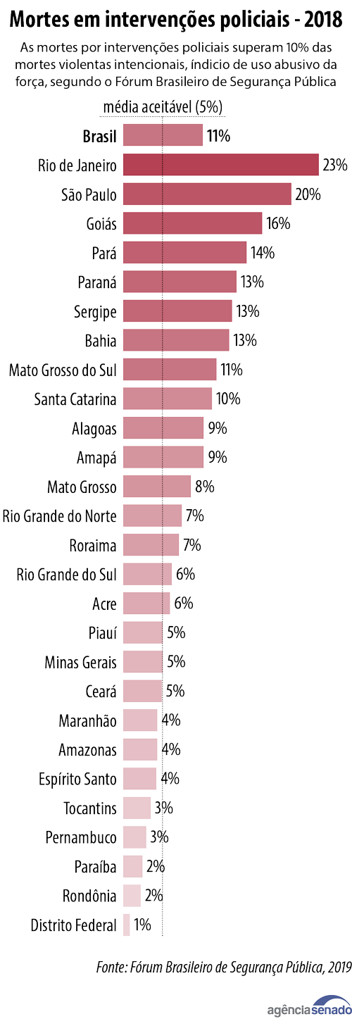 Desde 2017 e 2018, o problema da letalidade policial está se concentrando cada vez mais em alguns estados. Então, a gente tem estados como Rio de Janeiro, São Paulo, Pará, nos quais a proporção de mortes pela polícia é muito alta quando você compara com outros índices em geral.