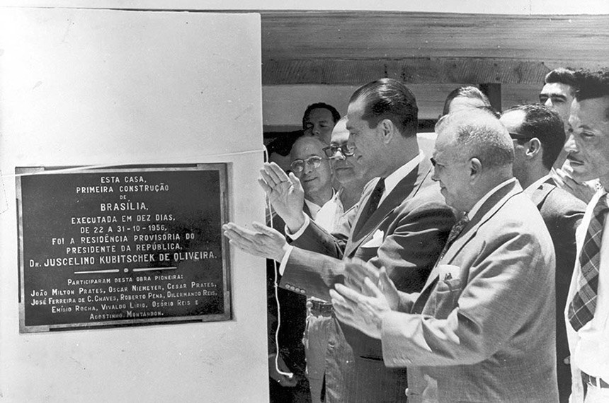 A construção, que começou mesmo antes de vencido o concurso por Lúcio Costa, contra seus 40 concorrentes, obrigou esse pessoal a jornadas de até 18 horas, independentemente da alternância de turnos, de modo que as obras não paravam à noite. Serafim Jardim recorda o expediente dos jipes que iluminavam a pista do aeroporto para que JK pudesse pousar e vistoriar as obras. Um dos ícones dessa época de pioneirismo, do lema dos “50 anos em cinco”, é o Palácio Catetinho, projeto de Niemeyer construído em madeira, no qual o presidente recebeu até músicos que vinham animá-lo deserto do Planalto.