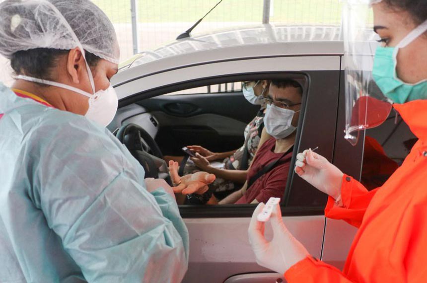 Na ausência de kits para testes, o Brasil tem feito diagnóstico, no sistema público, basicamente de quem já apresenta sintomas e procura os hospitais. No sistema privado, a orientação é a mesma, mas exames avulsos são possíveis, por R$ 300. Como a testagem é fundamental para o fim do isolamento e a retomada de algumas atividades, alguns governos começam a se movimentar. No dia 21, o Distrito Federal instalou um sistema "drive thru" para testagem em massa, inclusive de pessoas que não apresentam sintomas. No segundo dia de funcionamento, foram registrados 41 resultados positivos num total de 3.359 testes. Está prevista a aplicação de 100 mil exames.