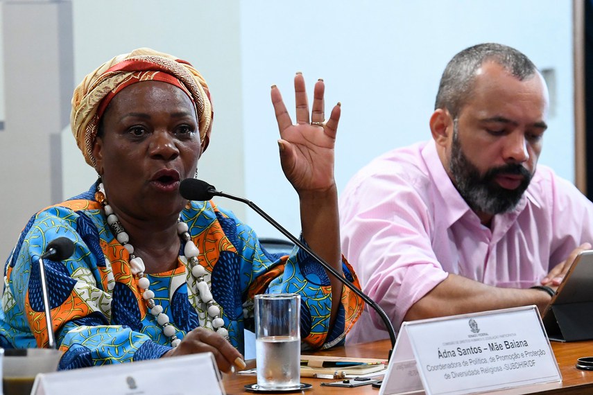 Audiência pública da Comissão de Direitos Humanos (CDH), em 18 de novembro de 2019, discutiu a importância de ações afirmativas em favor da população negra do Brasil. Ádna Santos, a Mãe Baiana, coordenadora de Política, de Promoção e Proteção de Diversidade Religiosa da Subsecretaria de Políticas de Direitos Humanos e de Igualdade Racial do Distrito Federal, lembrou que as religiões de matriz africana têm passado por perseguição e violência.