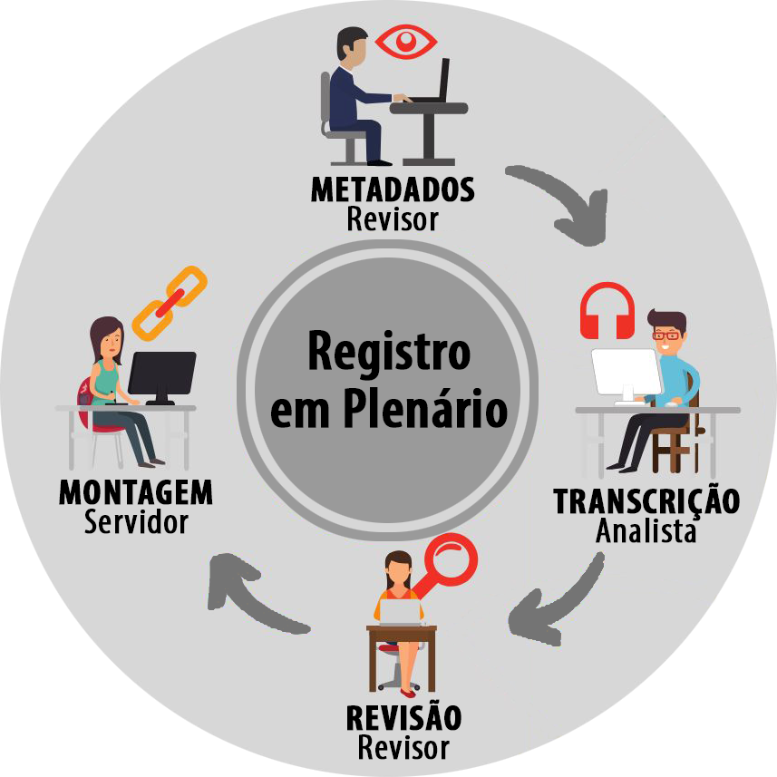 As adaptações já consolidadas são responsáveis pelo fato de o registro das sessões ter se traduzido tranquilamente para o sistema remoto. Para começar, os taquígrafos do Senado não escrevem em lápis e papel e não entram em Plenário. A figura do taquígrafo ilhado numa mesa e agarrado ao seu bloco de anotações foi substituída, há anos, por um ciclo de produção de notas taquigráficas totalmente informatizado.