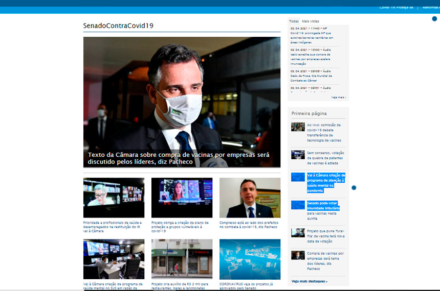 Um exemplo foi a página criada pela Agência Senado para reunir toda a produção legislativa destinada ao combate à pandemia. Ele é, principalmente, um espaço de informação para a sociedade, mas acaba por influenciar também o processo decisório do Senado.