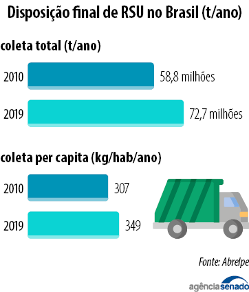 “De acordo com dados do Instituto de Pesquisa Econômica Aplicada (Ipea), aproximadamente 160 mil toneladas de resíduos sólidos urbanos são geradas por dia no Brasil. Do total de resíduos gerados, cerca de 30-40% são passíveis de reutilização e reciclagem, porém apenas 13% deles são efetivamente encaminhados para a reciclagem”, argumenta o senador Valentim.