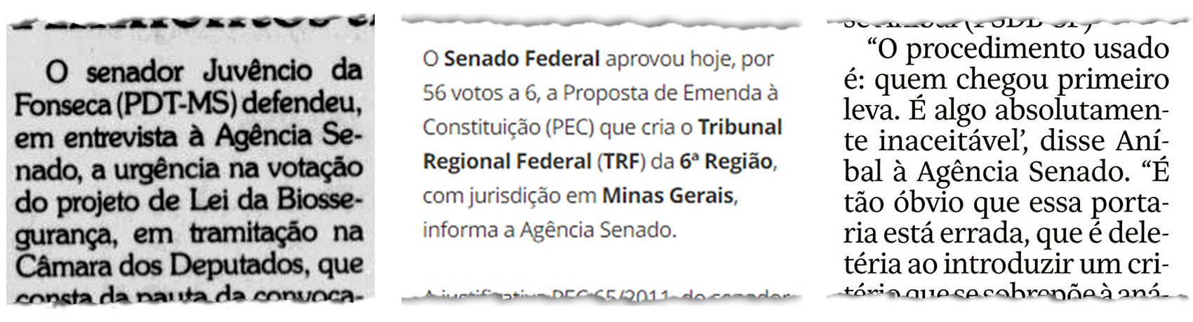 Como a imprensa não consegue cobrir tudo o que acontece no Parlamento, os cidadãos podem contar com a Agência Senado para se inteirar a respeito de temas que, por exemplo, afetam um grupo profissional determinado ou um conjunto específico de municípios do interior.
