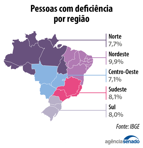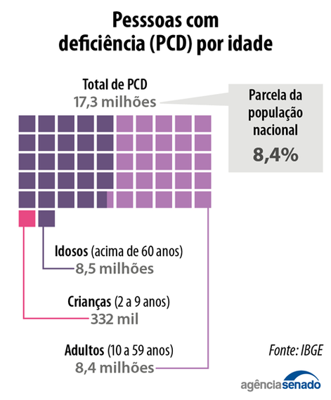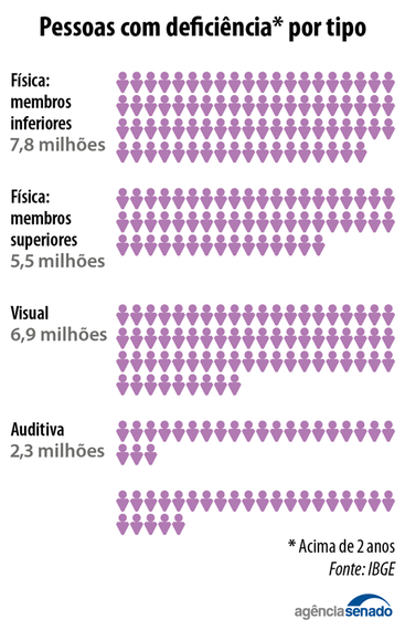 Dificuldades assim são compartilhadas por 17,3 milhões de brasileiros. Essa é a estimativa da parcela da população que possui algum tipo de deficiência no país, de acordo com levantamento do Instituto Brasileiro de Geografia e Estatística (IBGE) na Pesquisa Nacional de Saúde (PNS) de 2019. O número representa 8,4% do total de pessoas com mais de dois anos. O percentual de homens é de 6,9% (6,7 milhões) e o de mulheres, 9,9% (10,5 milhões).