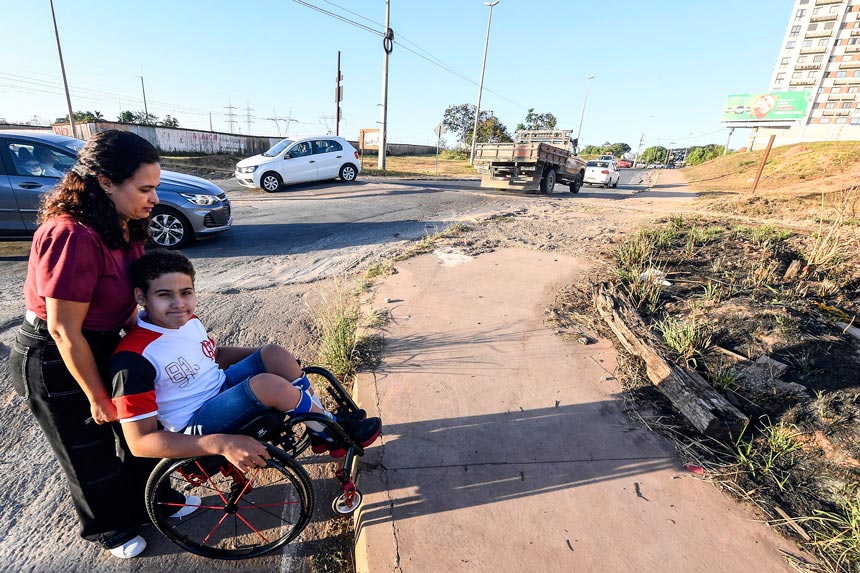 A professora universitária Michelline de Resende Angelim, de 45 anos, é mãe do Felipe, de 13 anos. O adolescente nasceu em Brasília com mielomeningocele — falha ou mau fechamento do tubo neural, que faz com que a medula, as raízes nervosas e as meninges fiquem expostas — e depende da cadeira de rodas para se locomover. Michelline reconhece a importância do Estatuto da Pessoa com Deficiência (Lei 13.146, de 2015), que completou sete anos, na quarta-feira (6), mas destaca que faltam campanhas para educar as pessoas sobre o direito à mobilidade dos cadeirantes.