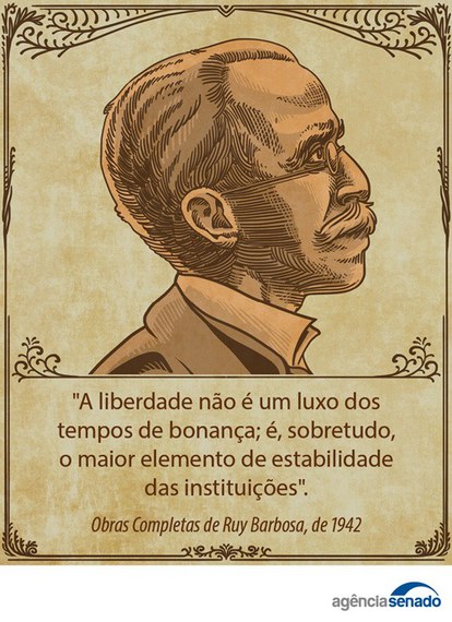 O patrono do Senado foi o primeiro ministro da Fazenda e da Justiça do período republicano e representou o Brasil na Conferência de Haia de 1907, nos Países Baixos, evento que estabeleceu importantes normas de direito internacional. Por isso, é também conhecido como Águia de Haia. Ele ainda foi membro fundador da Academia Brasileira de Letras (ABL), entidade que presidiu entre 1908 e 1919.