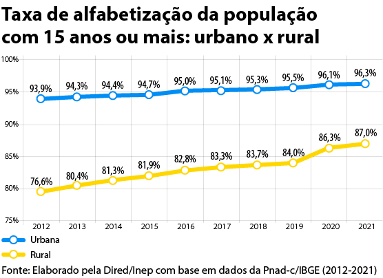 “O Brasil retrocedeu na cobertura educacional da população de seis a 14 anos de idade, de 98% em 2020 para 95,9% em 2021, o que representa um recuo de cerca de dez anos no indicador, visto que, para 2011, ele foi estimado em 96,1%. Tal retrocesso coloca o indicador de cobertura em um patamar inferior ao da linha de base do PNE em 2013, quando o índice foi de 96,9%. O contingente de crianças e jovens fora da escola, em 2021, é estimado em cerca de um milhão, o dobro do que havia em 2020”, destaca o relatório do Inep.