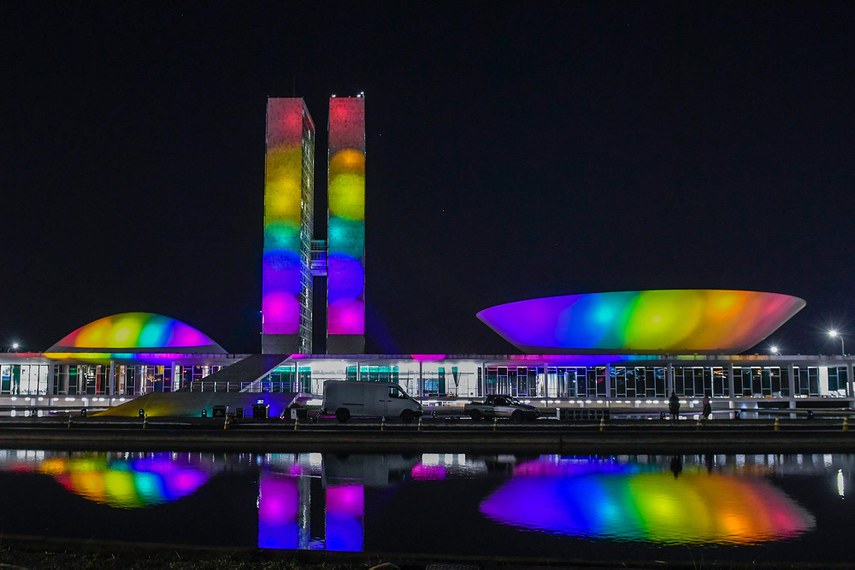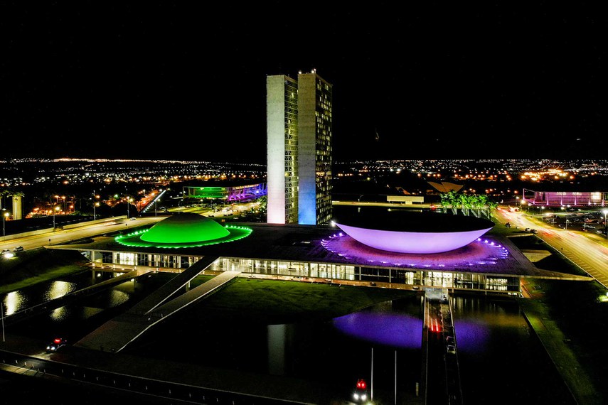 Você já notou que as cúpulas e as torres do Senado e da Câmara são iluminadas com cores e exibições de frases e imagens de temas relevantes para a sociedade, ao longo do ano?
