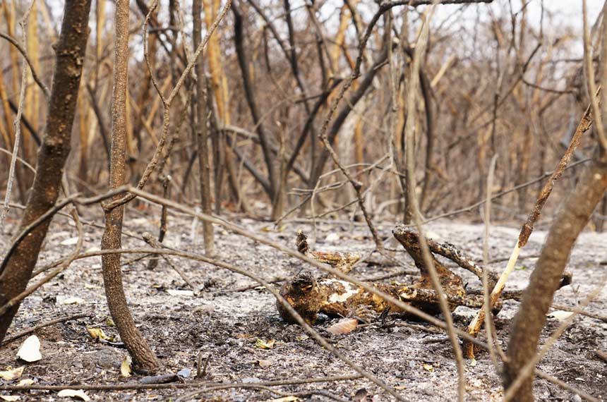 Os animais, em geral, estão acostumados a fugir de um tipo de fogo normal, o de superfície. Mas os últimos incêndios catastróficos reuniram muitas dificuldades ao mesmo tempo: os animais que se resguardaram nas copas das árvores foram atingidos pelas labaredas ou morreram intoxicados, os que se esconderam no solo, acabaram cozidos e aqueles que normalmente correm e pulam a linha de fogo, geralmente de um metro, como onças e veados, encontraram faixas de cem metros e acabaram por cair dentro do fogo. Muitos afundaram em brasas.