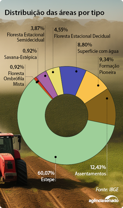 Levantamento que vem sendo feito desde 1985 pela rede colaborativa MapBiomas apontou que o Pampa Sul-Americano (nordeste da Argentina, sul do Brasil e Uruguai) perdeu pelo menos 20% da vegetação campestre até 2022. “As áreas de agricultura e silvicultura aumentaram 15% no período, o que representou um aumento de 8,9 milhões de hectares. Considerada a base para a produção animal, a vegetação campestre nativa foi reduzida de 44 milhões de hectares em 1985 para 35 milhões de hectares em 2022, conforme o mapeamento.