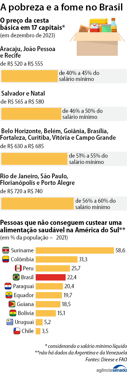 — O Brasil havia saído do Mapa da Fome da ONU em 2014, mas voltou em 2021. É inadmissível que o país, um dos maiores produtores de alimentos do planeta, não consiga garantir a todos um direito tão fundamental quanto a alimentação. Nesta realidade de grandes desigualdades sociais, o dinheiro é um fator determinante para o consumo. Quando o preço dos alimentos da cesta básica baixar, o acesso à comida vai aumentar e a fome vai diminuir significativamente.