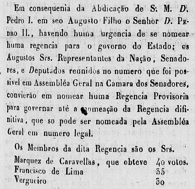 Não foi, porém, o que aconteceu, porque o deputado encarregado de redigir o projeto era justamente um dos irmãos Andradas, Antônio Carlos, antes ministro da Fazenda e agora crítico do governo.