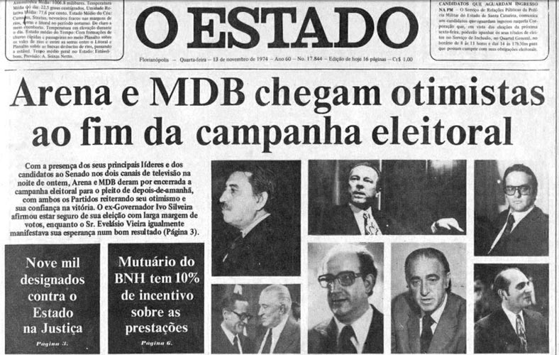 A eleição de 1974 é considerada um marco importante para o início da redemocratização do país. Foram escolhidos, por voto direto, um senador por estado, além de deputados federais e estaduais. Na ocasião, apenas dois partidos estavam na disputa: a Arena, governista, e o MDB, de oposição.