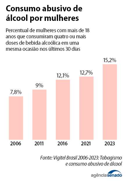 — Acredito que essa é uma oportunidade que o Senado Federal tem para fazer a diferença nesse cenário de consumo de álcool entre mulheres — complementa Juliana.