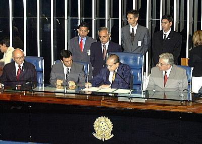 No Senado, a emenda foi examinada e votada com celeridade nos dois turnos, graças, principalmente ao empenho demonstrado por todos os senadores, disse Tebet. Com a promulgação dessa medida, acrescentou o presidente do Senado, "o Legislativo fecha com chave de ouro o pacote ético exigido pela sociedade."