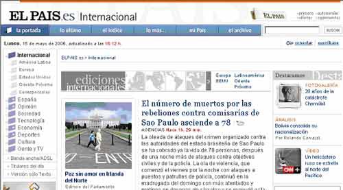 Os ataques do crime organizado realizados em São Paulo no fim de semana estão tendo repercussão na imprensa internacional. O site da CCN estampa notícia com título Brazil gang attacks leave 52 dead (Ataques de gangues no Brasil deixam 52 mortos). O site britânico BBC publicou reportagem intitulada Gang violence grips Brazil state (Violência de gangues toma estado brasileiro). O espanhol El País traz reportagem intitulada "El número de muertos por las rebeliones contra comisarías de Sao Paulo asciende a 78" ( o número de mortos em rebelião contraforças policiais de São Paulo sobre para 78).