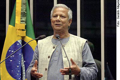 O Prêmio Nobel da Paz de 2006, professor Muhammad Yunus, compareceu ao Plenário do Senado nesta quinta-feira (12), em caráter especial, para fazer pronunciamento sobre a criação do microcrédito, modalidade de empréstimo financeiro criado por ele na década de 70 para atender à população pobre de Bangladesh, sua terra natal. Os recursos servem para pequenos empreendimentos que geram emprego e renda, explicou.