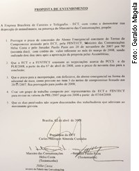 - Tenho notícia de que o presidente Lula, ontem, em evento realizado no Paraná, afirmou que o acordo precisa ser cumprido, da forma como foi firmado no documento assinado pelo ministro, pelo presidente dos Correios e Telégrafos e por mim próprio - disse Paim, exibindo o documento no Plenário do Senado.