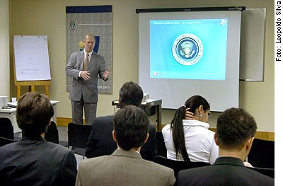 O Interlegis promoveu, nesta quinta-feira (30), em parceria com a Embaixada dos Estados Unidos, a palestra "Eleições 2008: O processo eleitoral dos EUA em perspectiva", sobre o complexo processo que leva à eleição do presidente naquele país. A palestra esteve a cargo do primeiro e terceiro secretários da Seção Política da Embaixada em Brasília, Dale Prince e Randy Johnson.