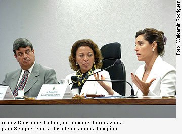 O plenário do Senado vai receber na noite da próxima quarta-feira (13) uma vigília em defesa da Amazônia. O encontro começa às 18h30 e é promovido pela Comissão de Meio Ambiente, Defesa do Consumidor e Fiscalização e Controle (CMA), pela Comissão Mista Permanente sobre Mudanças Climáticas e pela Comissão de Direitos Humanos e Legislação Participativa. A idéia, do Movimento Amazônia para Sempre, foi apresentada ao Senado pela atriz Christiane Torloni e recebeu o aval do presidente José Sarney.