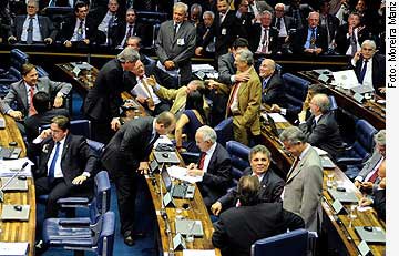 - Mas, quando o presidente [do Senado] quer, quando os líderes querem, quando a Casa quer, quando o povo exige, vota-se, e estamos votando. Por unanimidade!