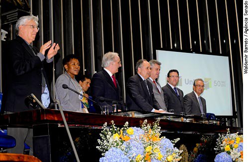 Ao homenagear os 50 anos da Universidade de Brasília (UnB), nesta segunda-feira (23), o senador Cristovam Buarque (PDT-DF), ex-reitor da instituição, ofereceu à aniversariante o texto Um presente para a UnB, no qual apresenta reflexões sobre o futuro da universidade no Brasil e no mundo. O cinquentenário foi comemorado em sessão solene do Congresso Nacional.