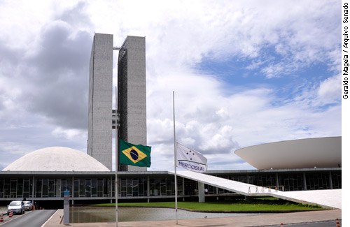 Um dia depois da tragédia ocorrida em Santa Maria (RS), as bandeiras do Brasil e do Mercosul foram içadas a meio mastro diante do Congresso Nacional nesta segunda-feira (28). O Poder Legislativo atendeu, desta forma, ao luto oficial de três dias decretado pela presidente Dilma Rousseff, em homenagem aos 231 mortos durante incêndio ocorrido em um clube noturno localizado na cidade gaúcha.