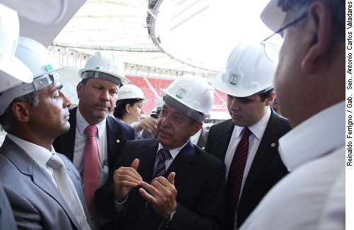Um grupo de deputados e senadores visitou nesta terça-feira (16) as obras do Estádio Nacional de Brasília Mané Garrincha. Depois de ouvir do secretário extraordinário para a Copa em Brasília, Cláudio Monteiro, a garantia de que o estádio será inaugurado em 18 de maio, o presidente da Comissão de Desenvolvimento Regional e Turismo do Senado, Antonio Carlos Valadares (PSB-SE), cobrou mais transparência nos gastos da obra.