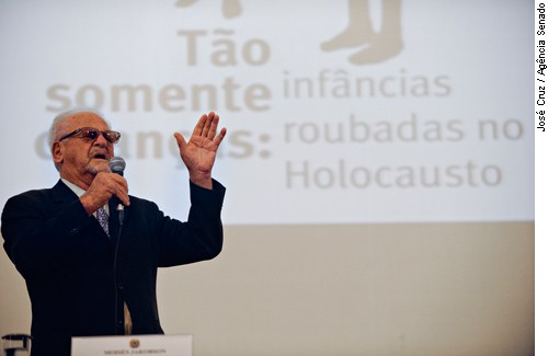 O Auditório Petrônio Portela recebeu nesta sexta-feira (19) mais de 200 estudantes, que compareceram ao Senado para ouvir Moisés Jakobson, de 86 anos, um sobrevivente do Holocausto. Durante a 2ª Guerra Mundial (1939-1945), ele era apenas um adolescente, como muitos dos jovens da plateia, quando iniciou uma perambulação por três campos de trabalhos forçados até o momento da libertação, com a chegada do exército da União Soviética à Polônia dominada pelos nazistas.