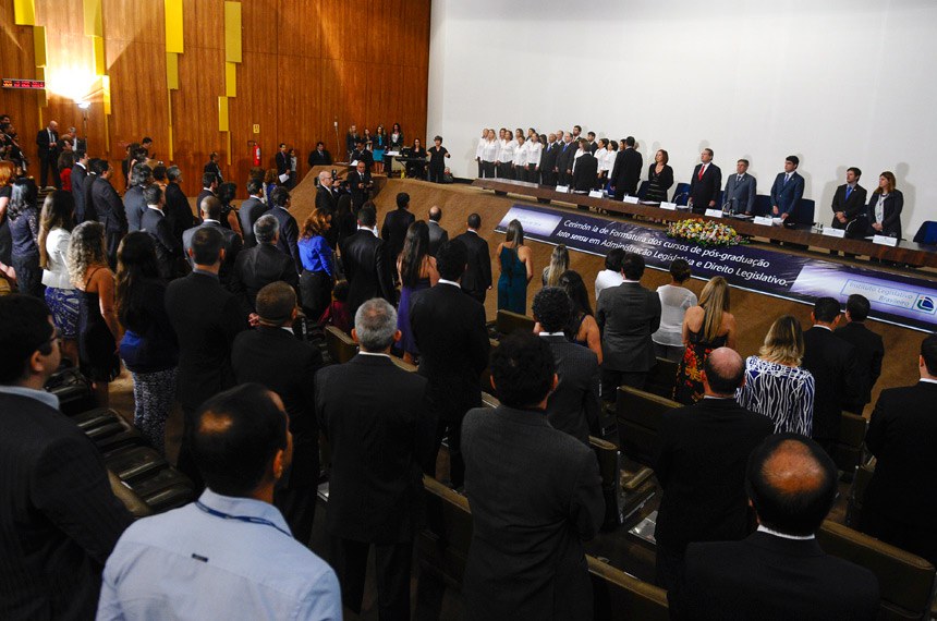 As duas primeiras turmas a receberem um diploma de pós-graduação lato sensu emitido pelo Senado tiveram formatura promovida ontem pelo Instituto Legislativo Brasileiro (ILB). Os 78 estudantes dos cursos de administração legislativa e de direito legislativo participaram da solenidade ao lado de autoridades como o presidente do Senado, Renan Calheiros, e o presidente da Comissão de Educação (CE), senador Cyro Miranda (PSDB-GO).