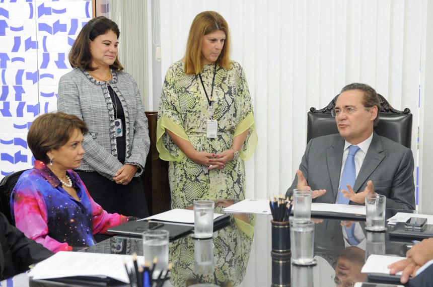 Durante a reunião da Mesa, nesta quarta-feira (11), o presidente do Senado, Renan Calheiros, comunicou que a atual diretora-geral adjunta da Casa, Ilana Trombka, passará a ocupar o cargo de diretora-geral. Analista de Comunicação Social, ela substitui Luiz Fernando Bandeira na função. Ele permanece à frente da Secretaria-Geral da Mesa.