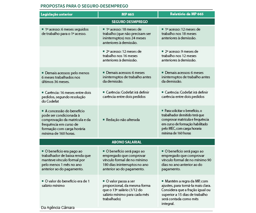 Em seu relatório, apresentado nesta terça-feira (14), Rocha alterou uma série de pontos da proposta editada pelo governo no fim do ano passado. A principal delas foi a redução dos prazos de carência (período de vínculo formal) que os trabalhadores têm que cumprir para ter acesso ao seguro-desemprego e ao abono salarial. Os destaques ainda poderão ser apresentados até o fim da discussão da MP, suspensa na terça-feira.