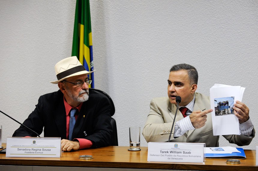 Tarek participou de audiência pública na Comissão de Direitos Humanos e Legislação Participativa (CDH) para debater a situação dos direitos humanos no país. Também estiveram presentes a embaixadora da Venezuela no Brasil, María Lourdes Durant, e o cônsul-geral em São Paulo, Manoel Vadell, que não se manifestaram durante o debate, realizado por iniciativa dos senadores Lindbergh Farias (PT-RJ) e Donizeti Nogueira (PT-TO).