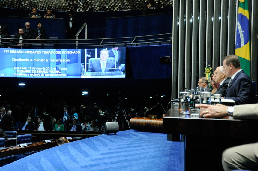 O presidente do Senado, Renan Calheiros, abriu há pouco a sessão temática do Plenário para debater os principais pontos do projeto que regulamenta a terceirização no Brasil (PLC 30/2015).