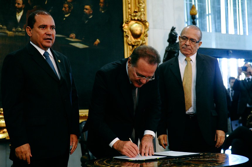 O presidente do Senado, Renan Calheiros, participou nesta manhã da cerimônia de criação da comissão de especialistas que vai apresentar anteprojeto de reforma do Código Brasileiro de Aeronáutica. O ministro-chefe da Secretaria de Aviação Civil, Eliseu Padilha, e o senador Vicentinho Alves (PR-TO), aviador civil, também estiveram na solenidade. Em seguida, a comissão realizou a primeira reunião.