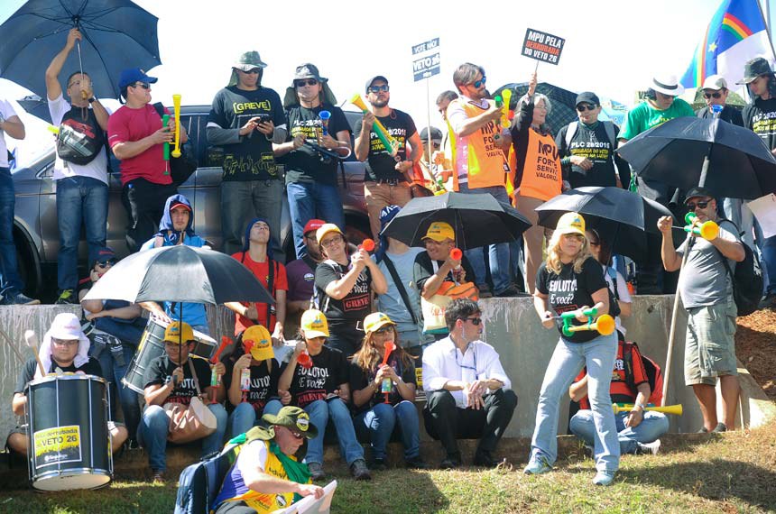 Durante a semana, diversos servidores do Judiciário ocuparam áreas em torno do Congresso Nacional pressionando os parlamentares, com carro de som e vuvuzelas, a derrubar o veto ao aumento aprovado no fim de junho. A derrubada de um veto exige apoio da maioria dos senadores (41) e dos deputados (257) na sessão conjunta do Congresso.