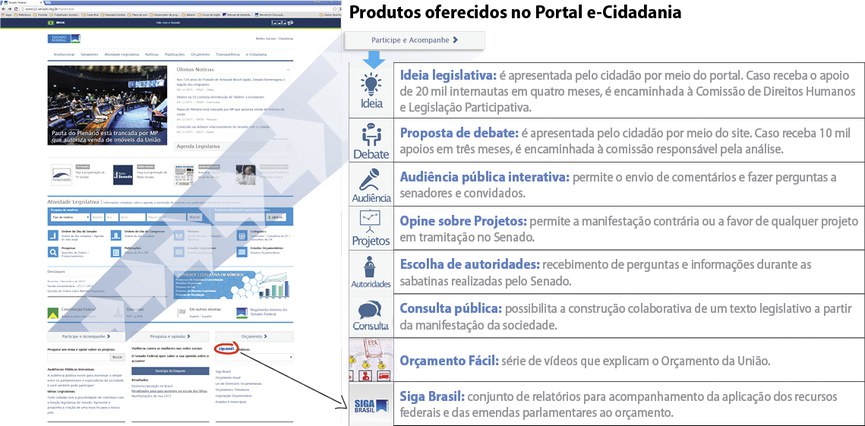 Entre 2013 e 2015, o Portal e-Cidadania, canal on-line de interação entre o cidadão e o Senado, registrou 454,6 mil opiniões de internautas sobre as 1,8 mil propostas em tramitação na Casa. Criado em 2012, o programa é uma iniciativa da Secretaria de Comissões, órgão da Secretaria-Geral da Mesa do Senado.