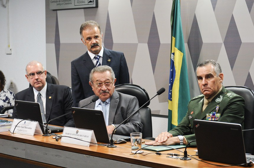 Senadores da Comissão de Constituição, Justiça e Cidadania (CCJ) exaltaram os princípios da hierarquia e disciplina presentes nas Forças Armadas durante a sabatina do general Marco Antônio de Farias, indicado para o Superior Tribunal Militar (STM). A indicação foi relatada pelo senador Valdir Raupp (PMDB-RO) e, após ser aprovada por unanimidade pela comissão, pode ser votada pelo Plenário do Senado ainda nesta quarta-feira (17).