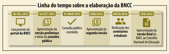 Em setembro de 2015, o MEC apresentou a primeira proposta da base. Em novembro, o ministério abriu o documento para a consulta pública, no portal Base Nacional Comum Curricular. Encerrada no mês passado, a consulta recebeu mais de 12 milhões de contribuições.