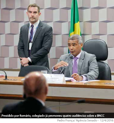 Presidida pelo senador Romário (PSB-RJ), a Comissão de Educação definiu como relator da avaliação da BNCC o senador Fernando Bezerra Coelho (PSB-PE). O debate sobre a Base Nacional Comum Curricular, no entanto, já tem tido espaço na comissão desde o final de 2015. Até este mês, o colegiado já fez quatro audiências públicas sobre o tema.