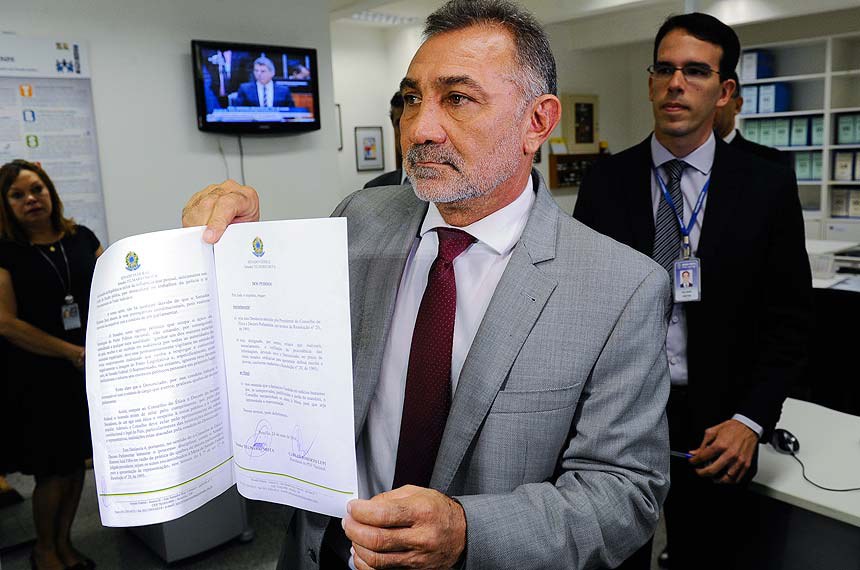 Assinado pelo senador Telmário Mota (PDT-RR) e pelo presidente nacional do PDT, Carlos Lupi, foi protocolado, nesta terça-feira (24), no Conselho de Ética e Decoro Parlamentar do Senado, pedido de abertura de processo disciplinar contra o senador Romero Jucá (PMDB-RR) por quebra de decoro parlamentar em consequência de notícias publicadas na imprensa que o situam numa conversa interpretada como obstrução à Operação Lava Jato.
