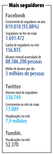 O crescimento do número de pessoas alcançadas pelas mensagens também é alto, segundo Silvia Gomide, gestora do núcleo. De 1º de janeiro a 18 de junho deste ano, as postagens no Facebook foram compartilhadas 4,6 milhões de vezes, receberam 15,5 milhões de curtidas e geraram 23,6 milhões de comentários.