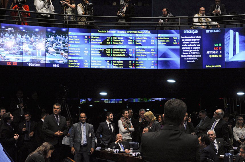 O Plenário do Senado rejeitou, por 58 a 22, o destaque para retirada do relatório de Antonio Anastasia (PSDB-MG) da denúncia relacionada a um decreto de suplementação orçamentária no valor de R$ 29 bilhões.